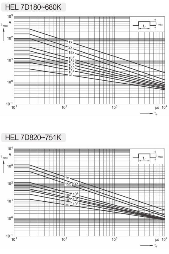 Remark: the Impluse voltage testing standards(1.2/50μs) with 40 times are only applicable to the products which with the varistor voltage more than 430V.