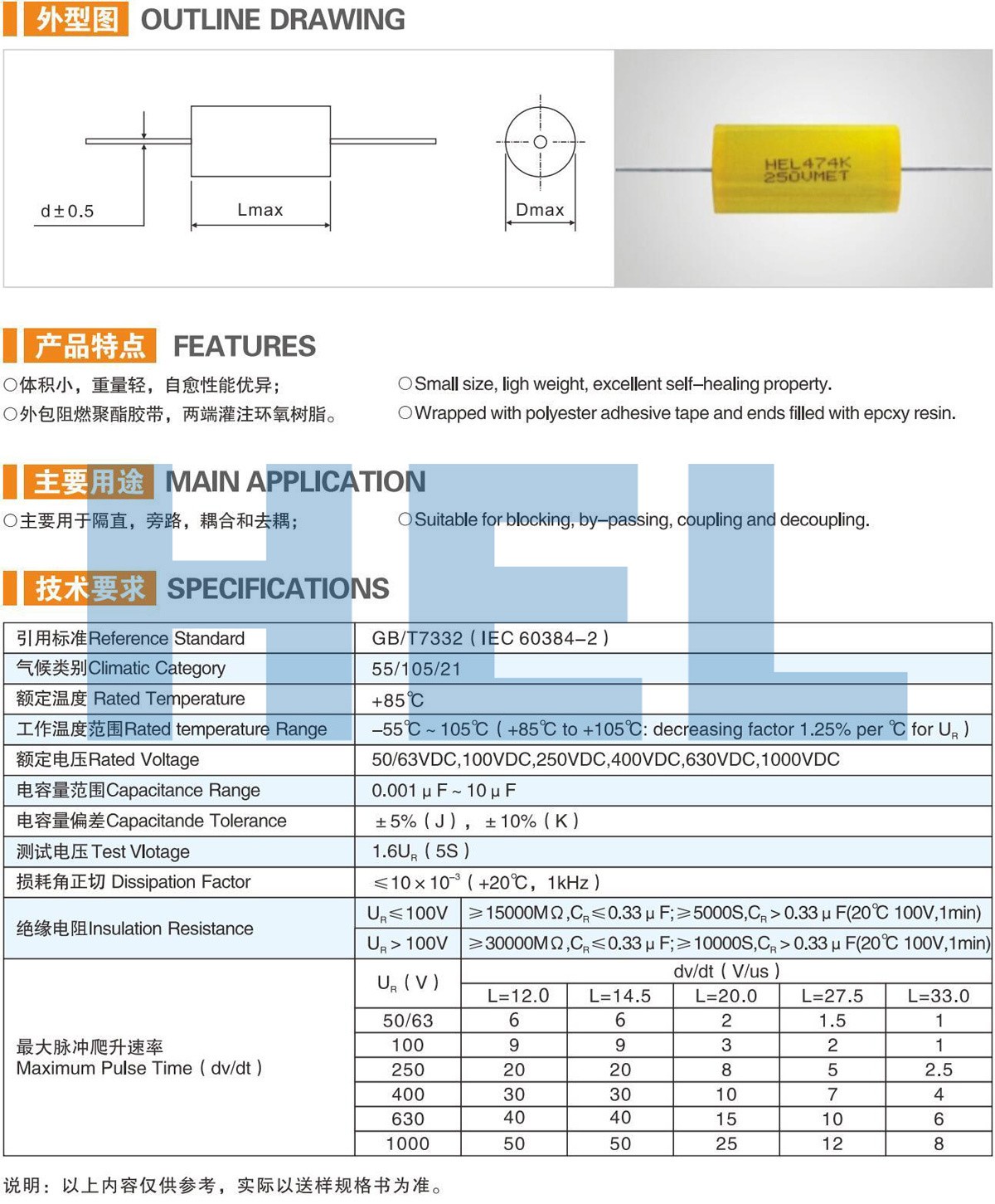 MET軸向金屬化聚酯薄膜電容器 CL20